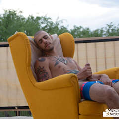 | Ari Nucci just looks like a bad boy, but deep inside he still hsa a soft spot for his ex - the twink that got away. At the end of a long day of work, as the light begins to fade, Ari sits down and pulls out his memories along with his cock. As he reflects on his ex, chasing after sunsets they might have shared, he strokes that big cock as if there was no tomorrow.